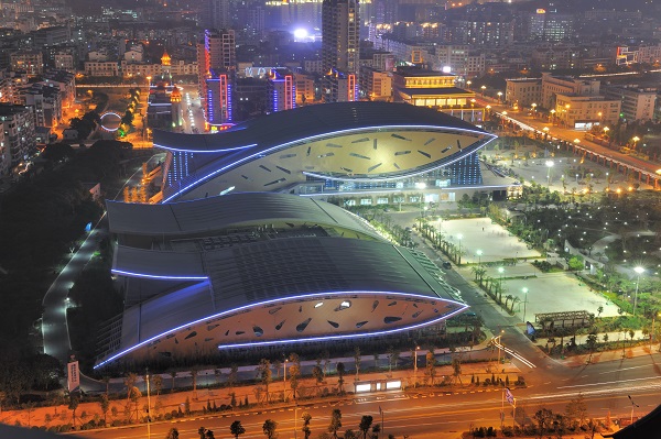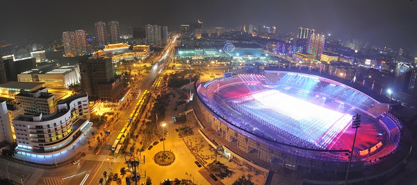 体育中心南区夜景—综合体育馆和游泳馆夜景