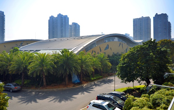 2、综合体育馆:综合体育馆位于体育中心南区西侧,于2010年投入使用,用地面积75亩,建筑面积33016平方米,投资概算1.8亿元,于2010年8月竣工投入使用。该馆前部为标准篮球比赛馆,有观众座位6000座,设有篮球场地3个和羽毛球场地8片。综合体育馆在设计时,提高一层,现作为商业用房,面积7400平方米。可承办国际和国内球类、武术等项目的比赛,第十四届省运会闭幕式在此举行,并承担省运会武术套路、乒乓球等项目比赛。2012年第五届亚洲体操锦标赛、2013年第五届世界龙狮锦标赛、2014年“西班牙现代舞蹈”文化交流晚会、2015年第二届中华妈祖文化全国书法篆刻大展、2016年第二十五届世界技巧锦标赛、2017年“妈祖杯”海上丝绸之路国际羽毛球挑战赛等在此举行。