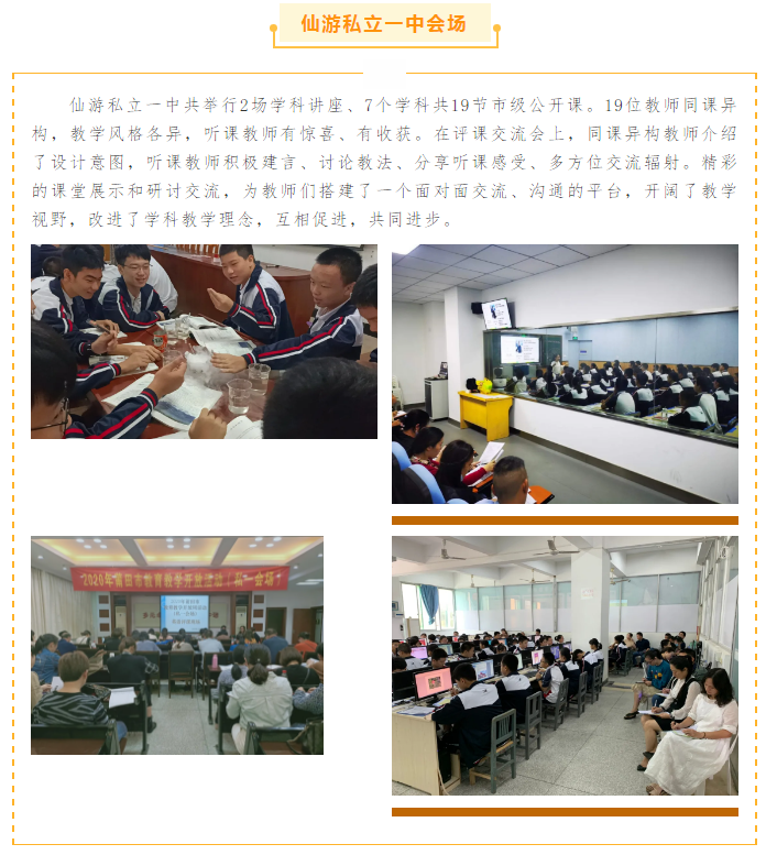 10月19至23日,莆田五中、仙游一中和仙游私立一中名师汇聚,群英荟萃,2020年莆田市普通中学第一场、第二场教育教学开放活动在三所中学同时进行,拉开了为期十周的开放活动序幕。