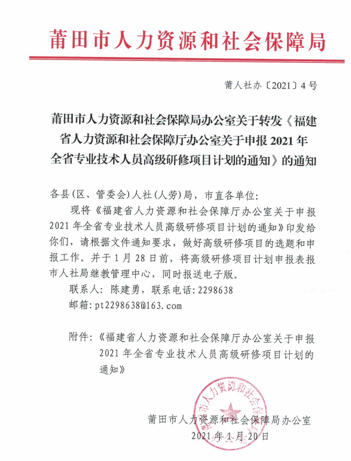 转发关于申报2021年度全省高级研修项目计划的通知(莆人社办【2021】4号).pdf
