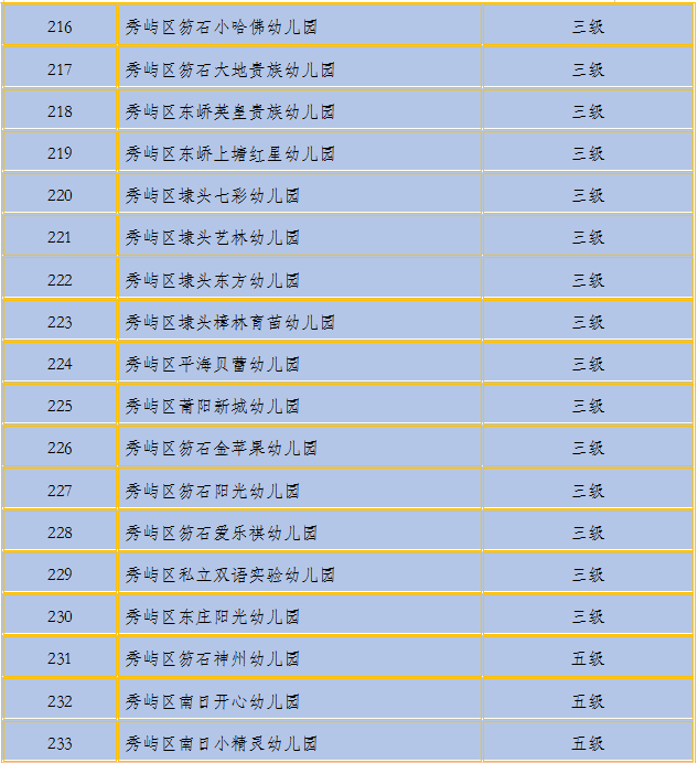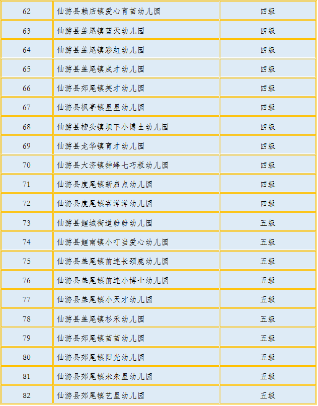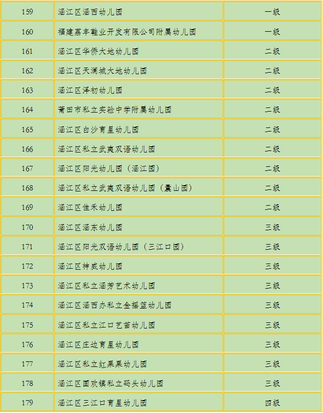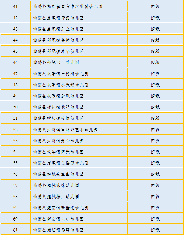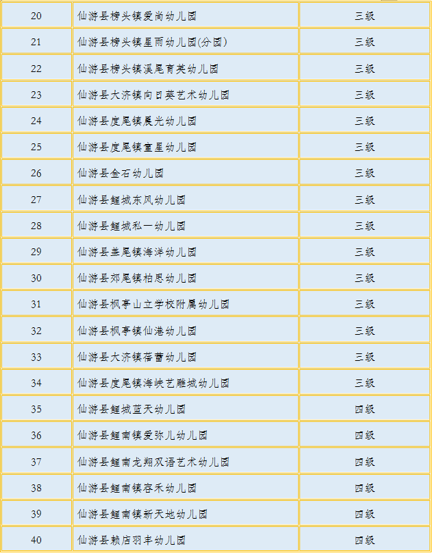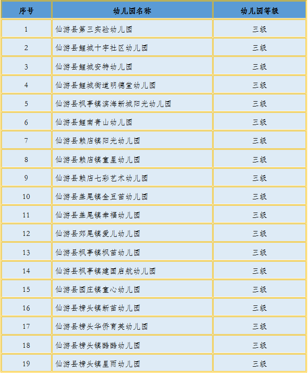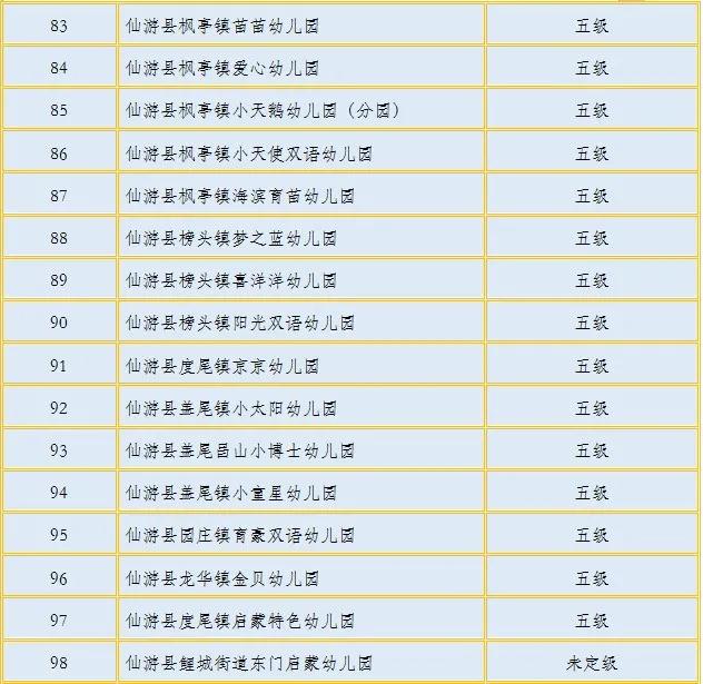 截至目前,我市共有普惠性民办幼儿园236所,其中仙游县98所,荔城区36所,城厢区24所,涵江区57所,秀屿区18所,北岸3所,具体名单见下表: