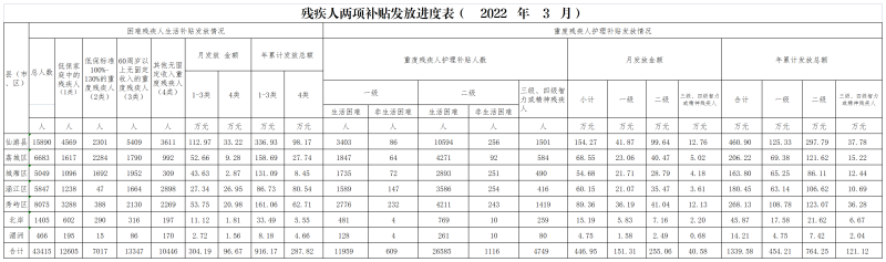 2022年3月莆田市残疾人“两项补贴”发放统计表