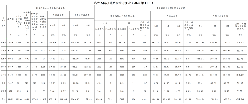2022年11月份残疾人两项补贴发放进度表