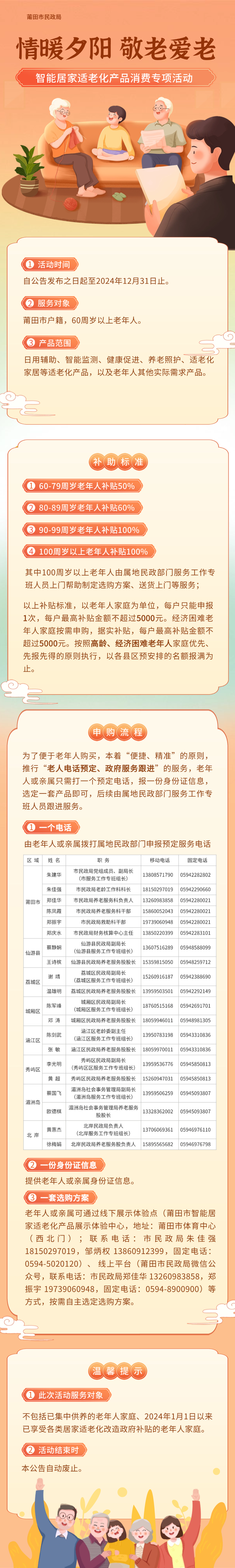 莆田市民政局等4部门关于发布莆田市开展 “情暖夕阳 敬老爱老”服务 推动智能居家 适老化产品消费专项活动的公告