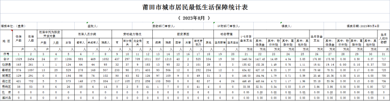 2023年8月城市居民最低生活保障统计表