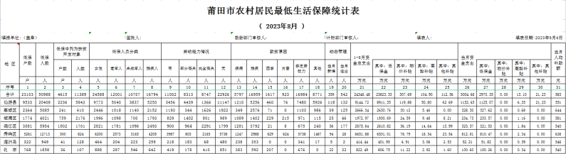 2023年8月农村居民最低生活保障统计表