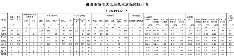 2023年11月城市居民最低生活保障统计表