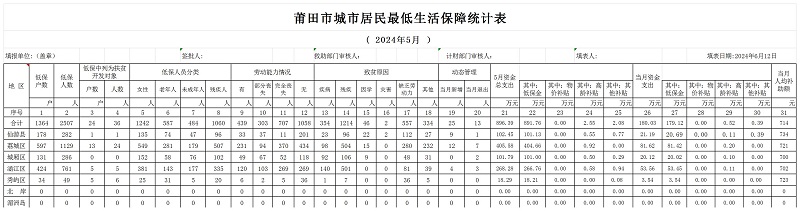2024年05月城市居民最低生活保障统计表