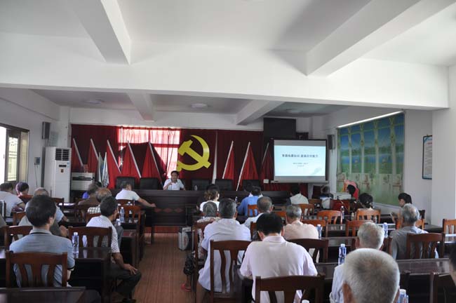 市地震局局长施金冷为该村两委干部、村民代表作防震减灾知识讲座。讲座以“掌握地震知识,提高应对能力”为主题,以地震科普知识为切入点,介绍了地震发生的特征、地震带分布、地震的灾害、我市地震构造概况及地震预报与地震谣言等知识,并详细讲述了地震来临时如何防震避震等问题。一个小时的讲座,以多媒体的形式,用群众喜欢交流的方言,图文并茂地讲授,内容充实、语言生动。