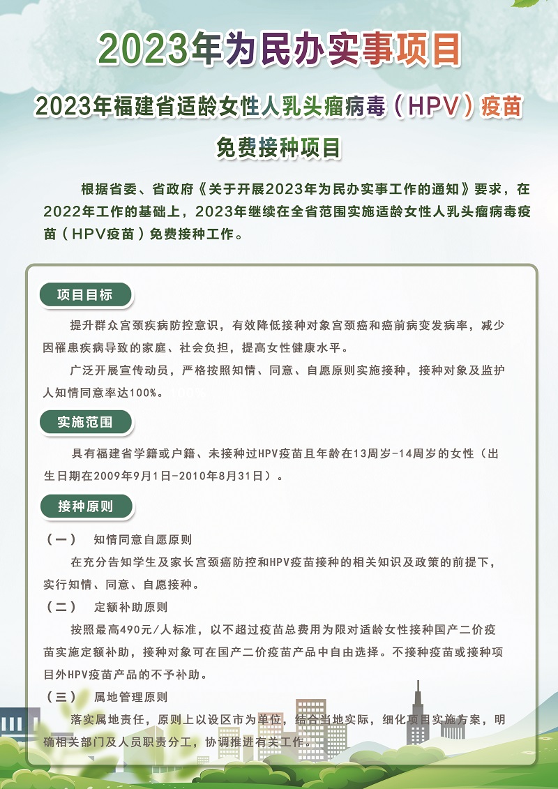 为民办实事项目丨2023年福建省适龄女性人乳头瘤病毒(HPV)疫苗免费接种项目