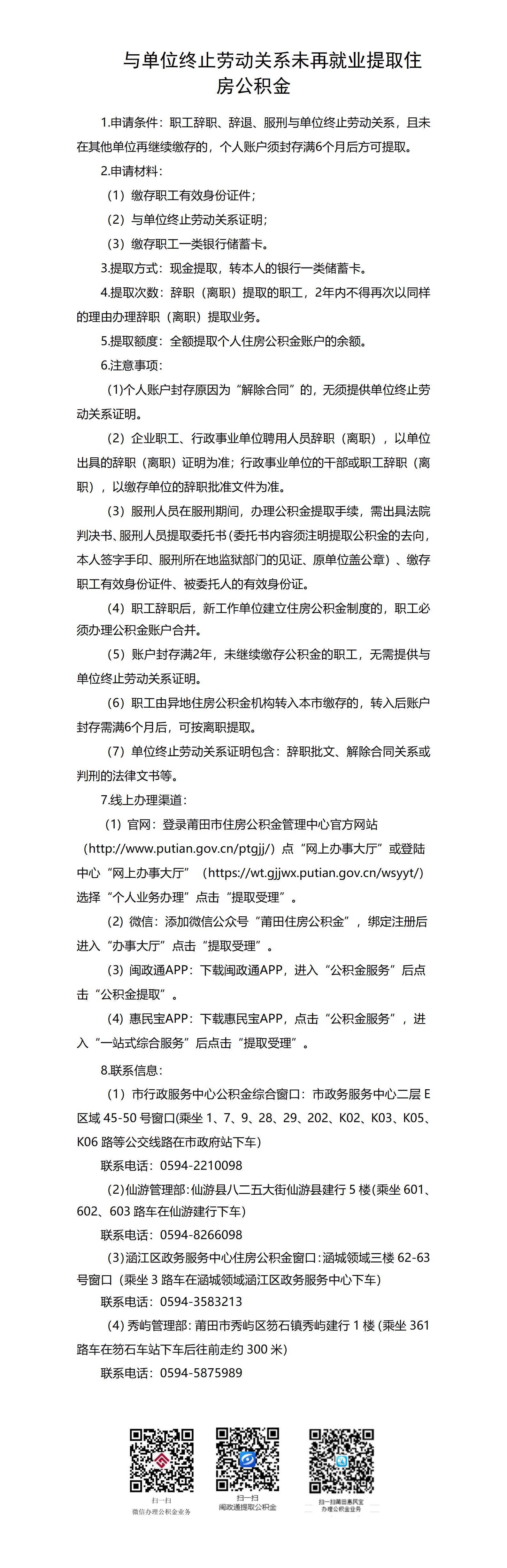 高频事项-与单位终止劳动关系未再就业提取住房公积金