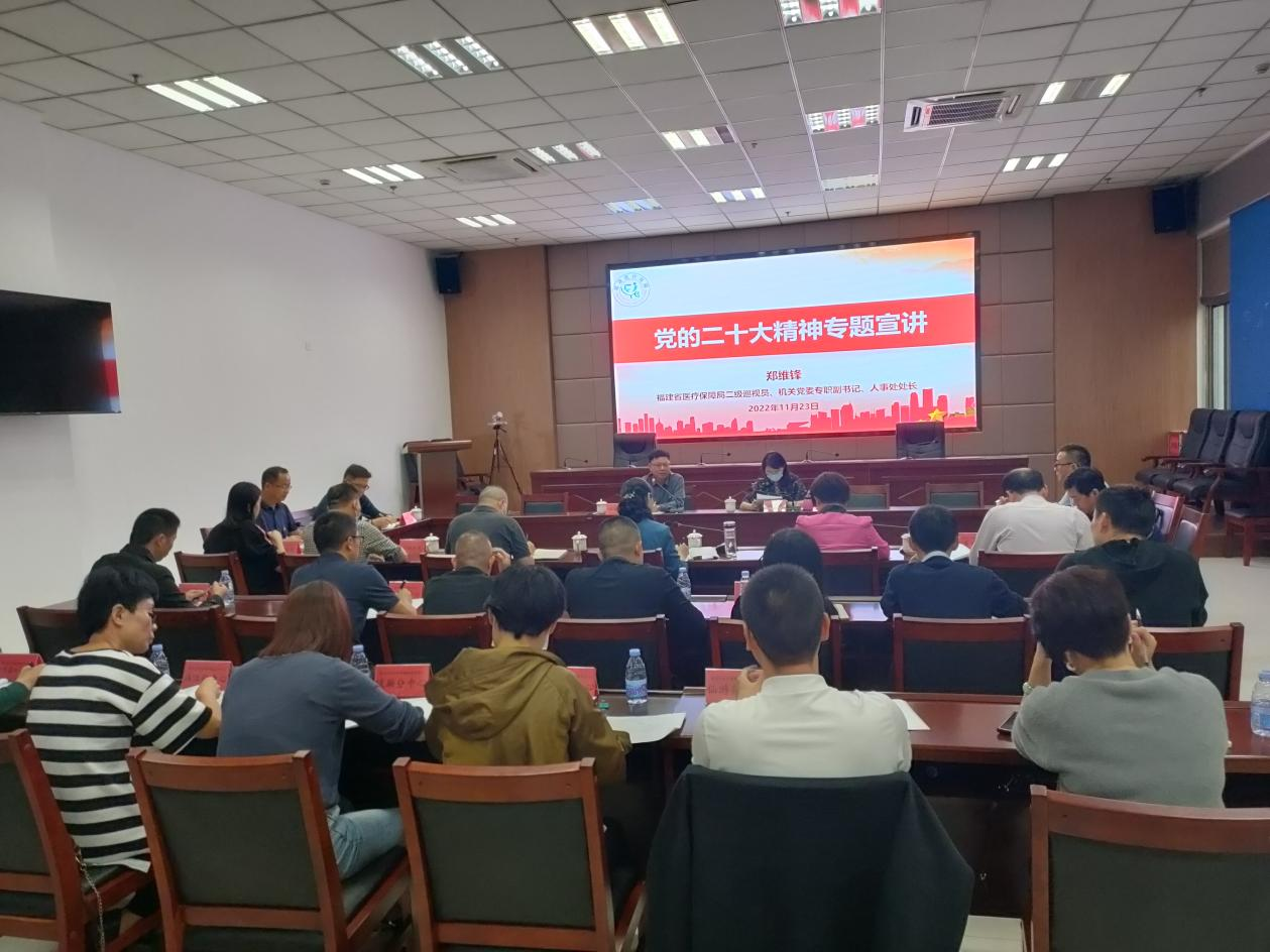 会上,郑维锋处长从深刻领会党的二十大主题、深刻领会过去五年工作和新时代十年的伟大变革、深刻领会习近平新时代中国特色社会主义思想的世界观和方法论、深刻领会以中国化时代化推进中华民族伟大复兴的使命任务、深刻领会未来一个时期党和国家事业发展的重大部署、深刻领会以伟大自我革命引领伟大社会革命的重要要求、深刻领会团结奋斗的时代要求等7个方面,对党的二十大精神进行系统全面宣讲,同时结合医保领域工作实际,畅谈党的二十大精神学习体会与感受,一起谋划思路、落细措施。