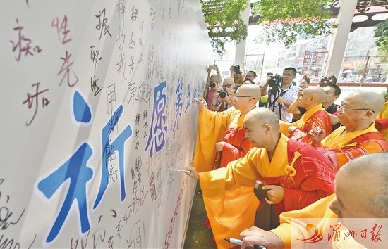 7月9日上午,我市佛教界在南山广化寺举行“千僧祈福 万众祈愿”系列活动,支持我市申办第五届世界佛教论坛。