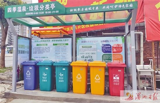 昨日,记者在市区荔城大道一家酒店前看到,一座崭新的生活垃圾分类亭已完成建设,即将投用(如图)。与以往的分类亭不同的是,该分类亭还按“四定”要求设置了洗手池、监控探头、排水设施等,设计更加完善。