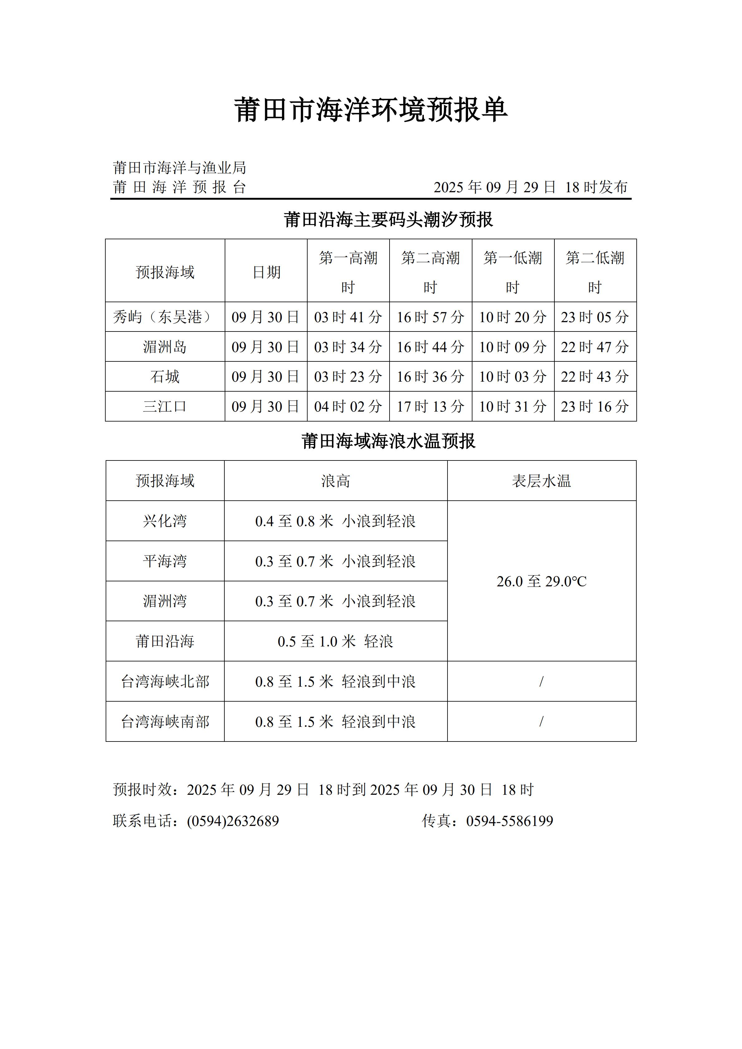 海洋环境预报(2025年9月29日发布)