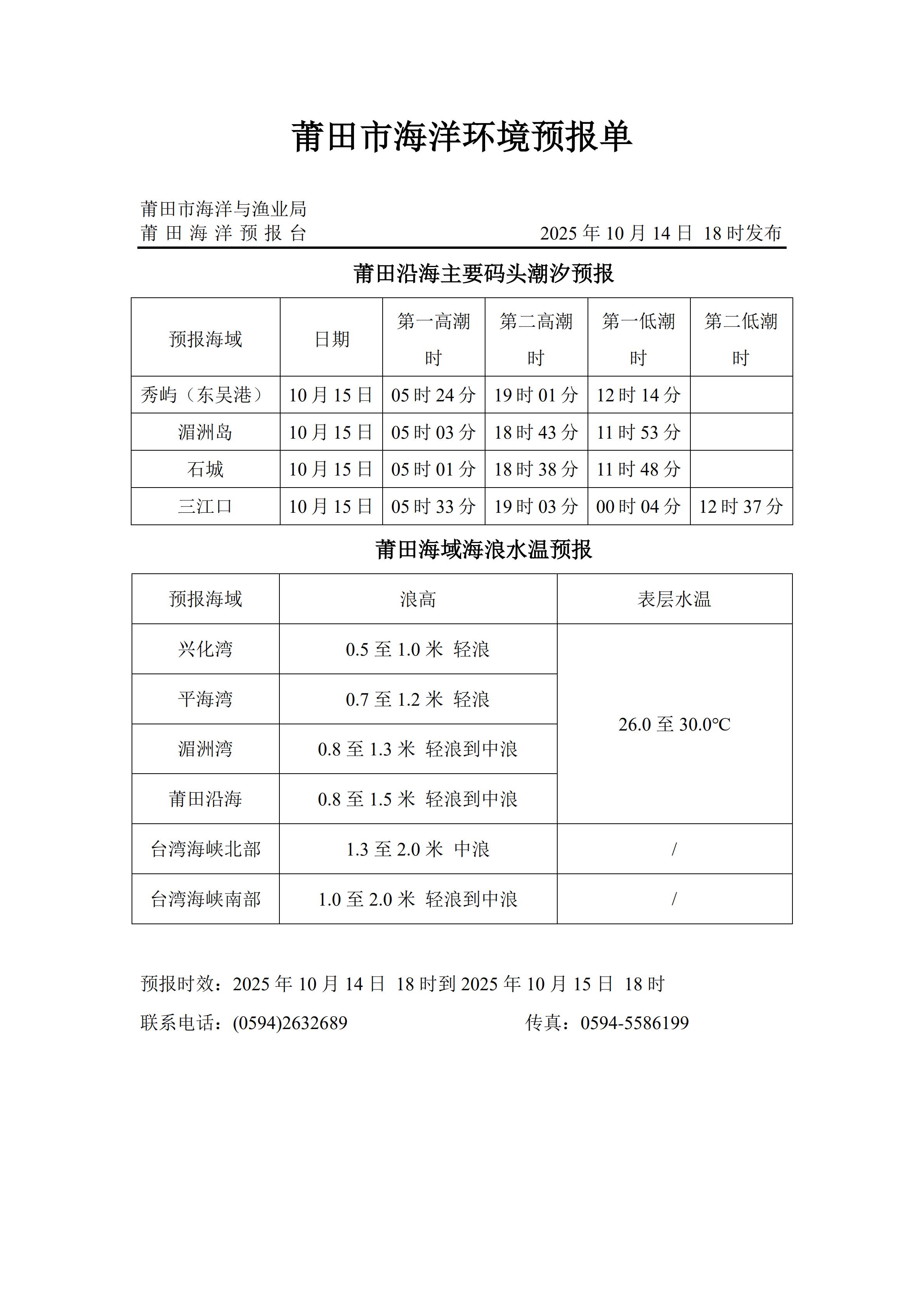 海洋环境预报(2025年10月14日发布)