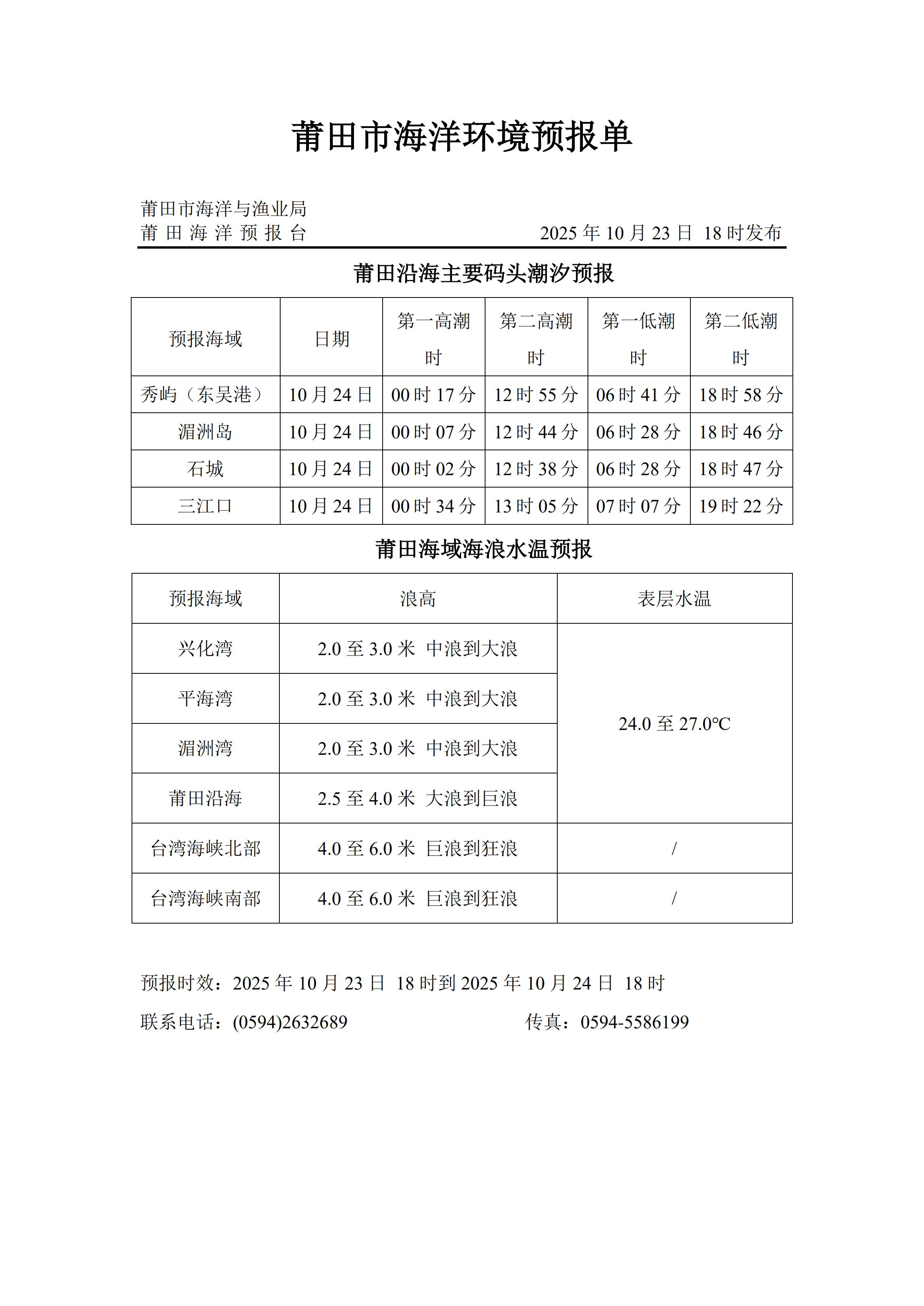 海洋环境预报(2025年10月23日发布)