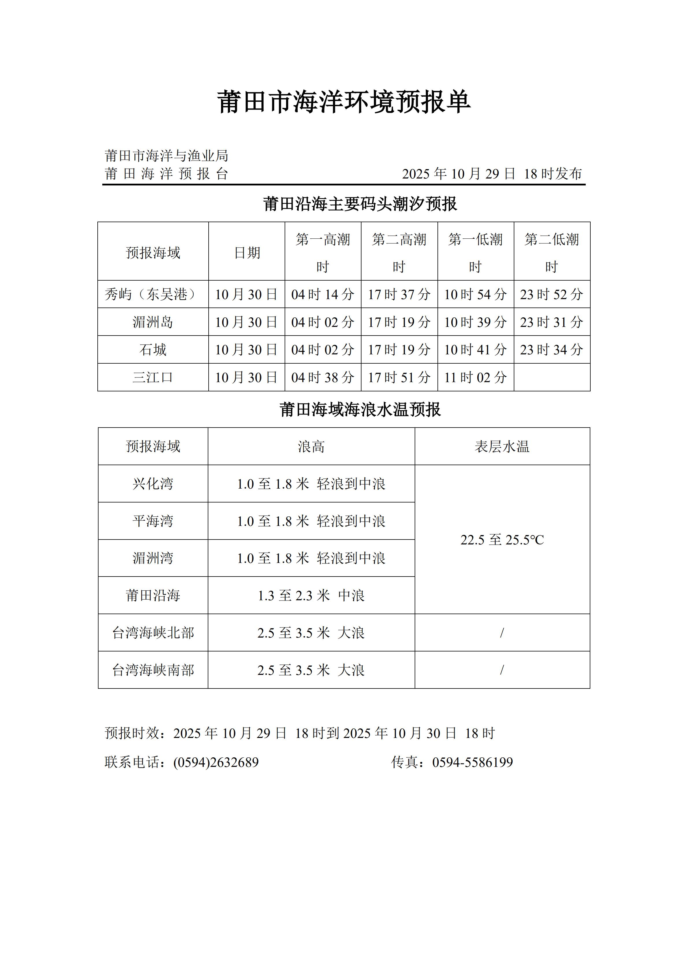 海洋环境预报(2025年10月29日发布)
