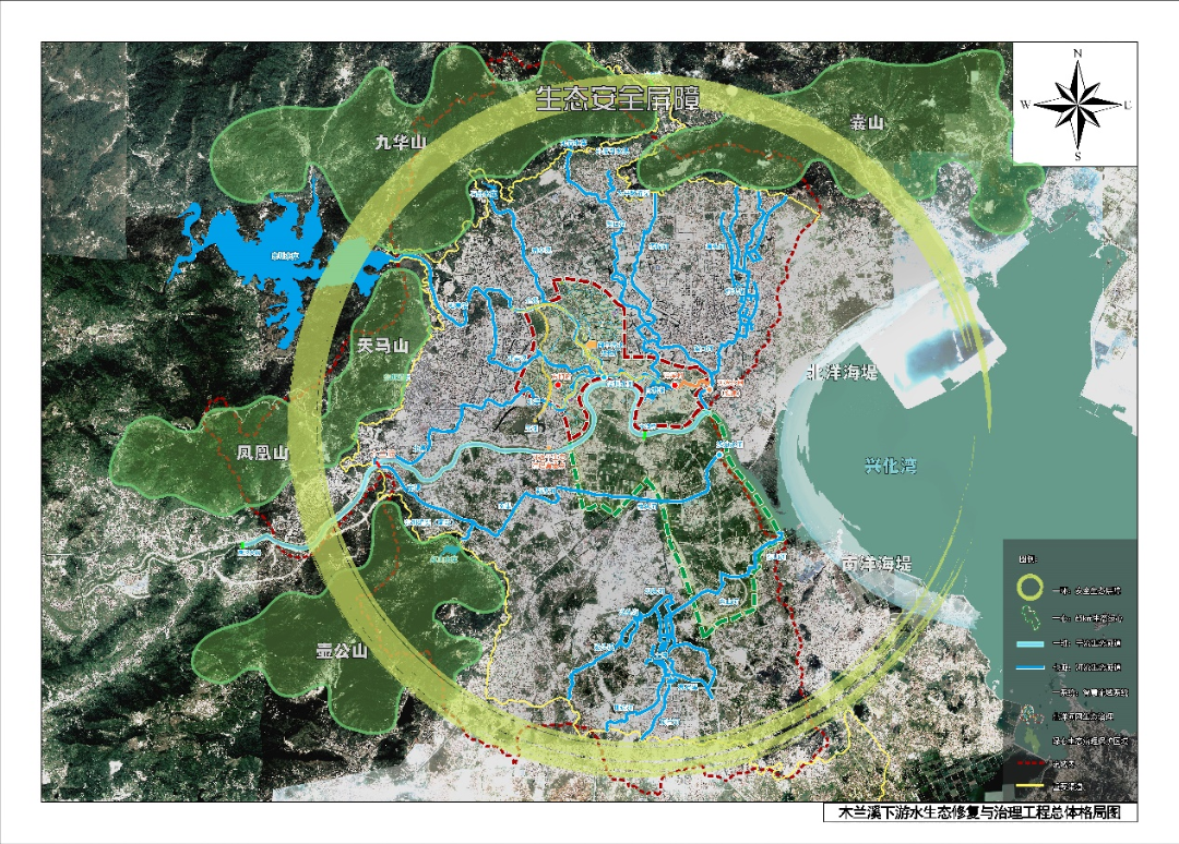 ▲木兰溪下游水生态修复与治理工程总体格局图