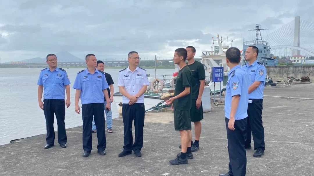 莆田市涵江区副区长、莆田市公安局涵江分局局长黄德新到三江口的木兰溪入海口处检查指导工作。莆田市公安局涵江分局供图