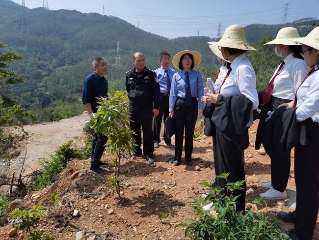 涵江区法院、检察院、公安局、自然资源局等部门联合对涉林生态案件补植复绿现场踏勘。莆田市公安局涵江分局供图