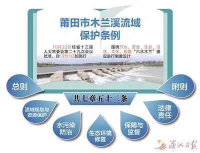 《莆田市木兰溪流域保护条例》于今年8月26日经市七届人大常委会第四十次会议通过,于今年10月22日经省十三届人大常委会第二十九次会议批准,自今年12月1日起施行。