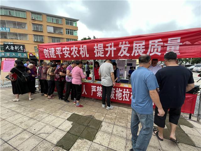 活动现场,通过悬挂宣传横幅标语、设置系列宣传展板、现场分发农机安全宣传材料、太阳帽、购物袋等宣传品,宣传普及农机安全生产相关法律法规及操作知识、农机应急避险和自救互救办法、农机安全防护防范常识,解答农民群众疑问。