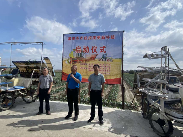 10月23日上午,莆田市农机报废更新补贴启动仪式在荔城区丰隆农机合作社举行。市农机化中心主任徐腾海、荔城区农业农村局局长吴光磊出席仪式并讲话。市、县区农机化中心主任及相关工作人员、回收企业和经销商代表、部分乡镇农机负责人、农机合作社和农机大户共50多人参加。