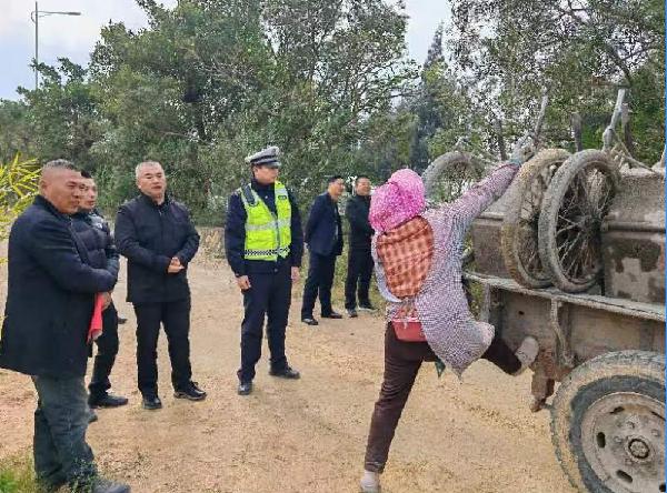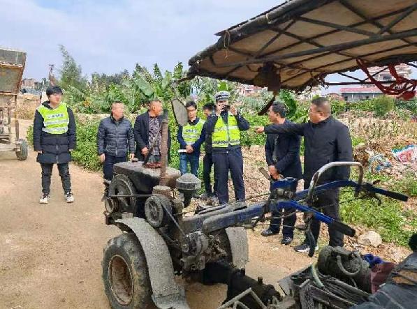 在秀屿区石城疏港公路东峤西安路段,联合秀屿区农机化中心、东峤镇政府、东峤交警中队,设点开展联合执法检查,重点检查拖拉机无牌无证、违法载人、逾期未报废上道路行驶等严重违法行为,现场查获一台手扶拖拉机存在无牌无证、违法搭载1人等违法行为,当场由交警部门依法扣押;