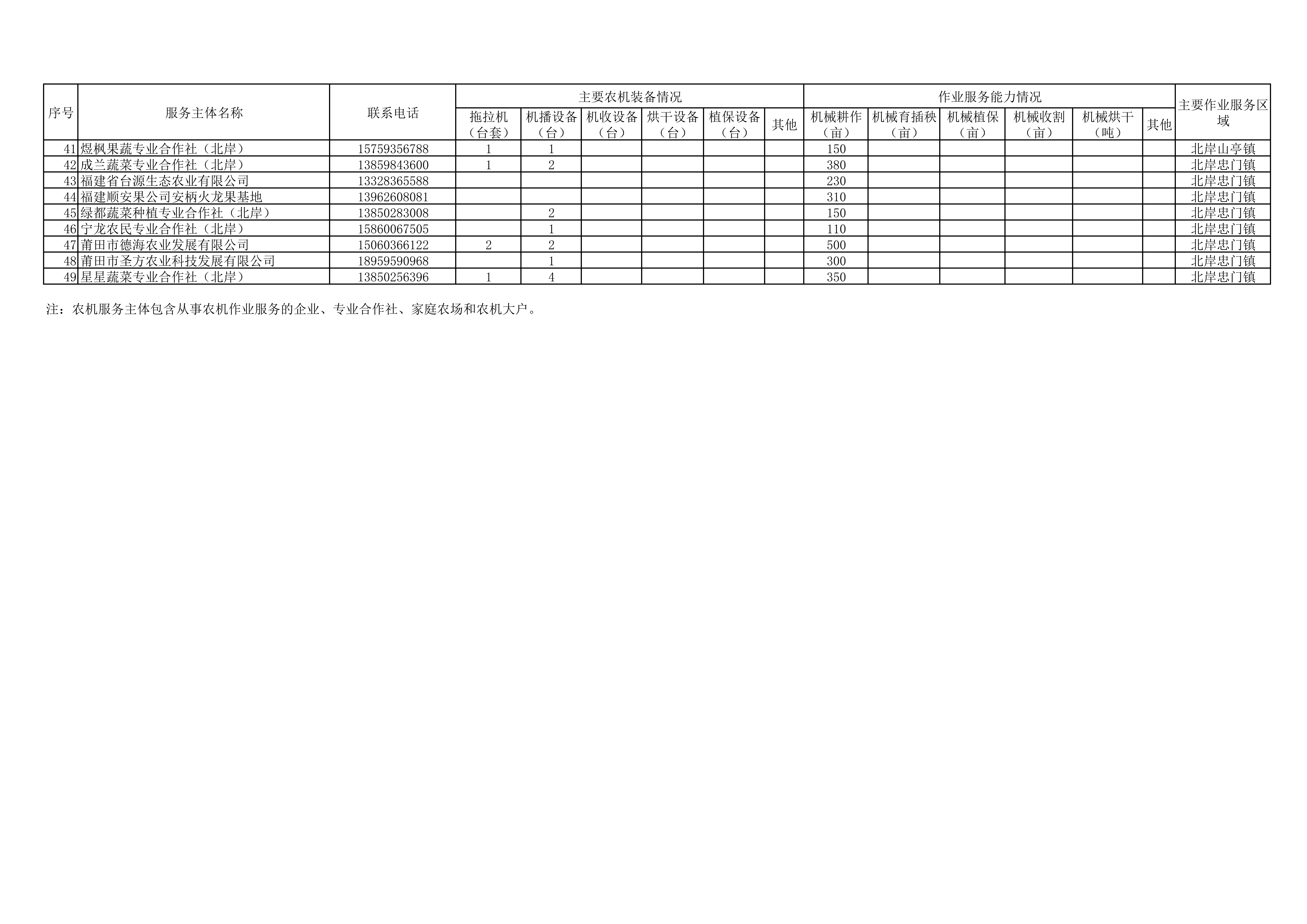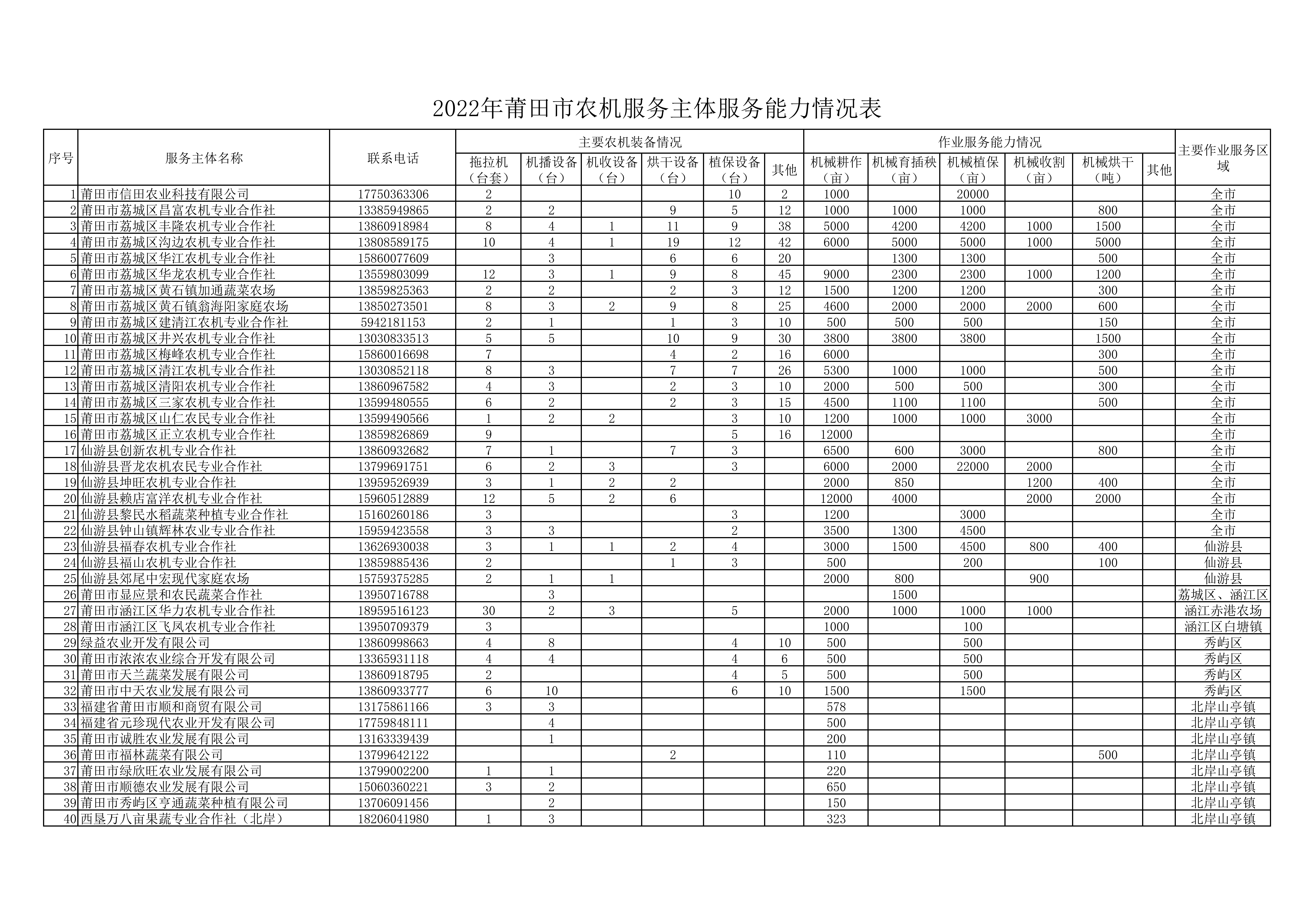 附件:2022年莆田市农机服务主体服务能力情况表