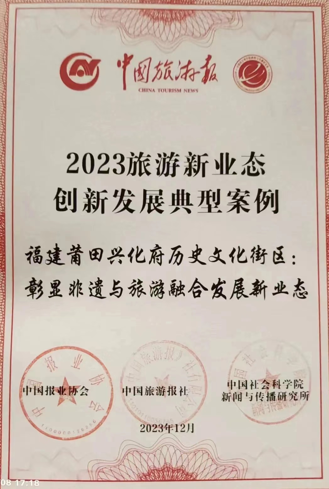 12月8日,“第十届中国旅游产业发展年会”在江西省赣州市举办。会上揭晓了“2023中国旅游产业影响力案例”名单,全国共评选出10大类100个2023中国旅游产业影响力案例,《福建莆田兴化府历史文化街区:彰显非遗与旅游融合发展新业态》入选“旅游新业态创新发展典型案例”。