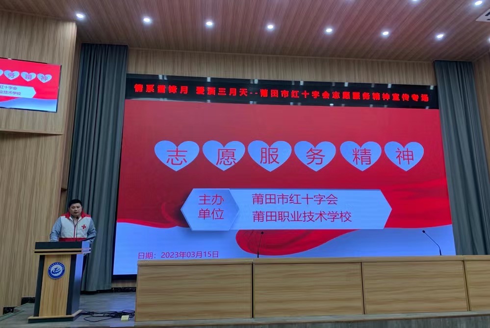 “人道、博爱、奉献”的红十字精神与雷锋同志服务人民、助人为乐的奉献精神交相辉映、与中华优秀传统文化一脉相承、与社会主义核心价值体系完全一致。为进一步践行红十字精神与雷锋精神,3月份,市红十字会举办应急救护普及、慰问抗疫人员、“三献”宣传等系列活动,15日下午,由市红十字会主办,莆田学院附属医院、莆田职业技术学校联合承办的“学雷锋”系列活动(志愿服务精神宣讲专场)在莆田职业技术学校举行。
