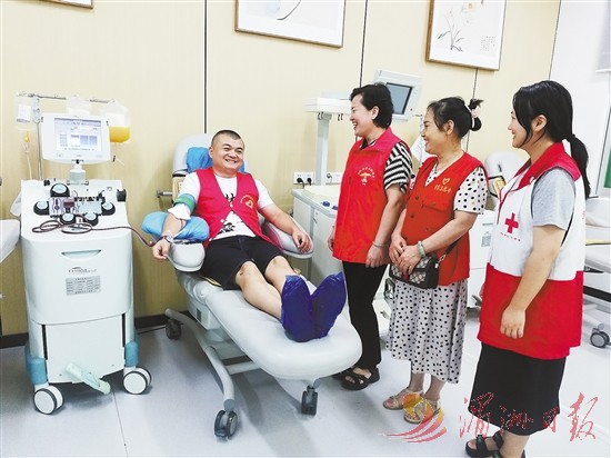 8月2日,林门峰带着6个志愿者到市中心中心血站献血。他本人献出2个治疗量的机采血小板,这是他第167次参与无偿献血,献血量超过10万毫升,可拯救近300条生命。