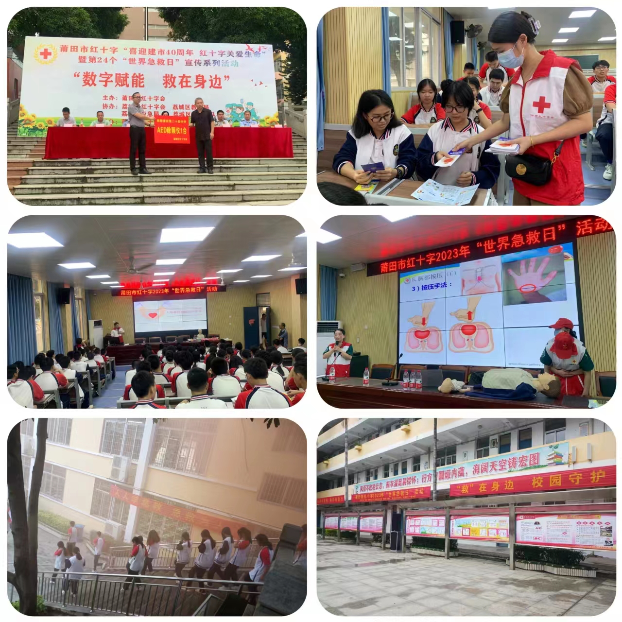 在第24个“世界急救日”来临之际,9月8日下午,市红十字会与荔城区红十字会、区教育局、区应急局、区消防大队、红十字志愿服务队、莆田第二十四中学联合举行了主题为“数字赋能 救在身边”的应急救护宣传和演练活动。莆田市红十字会党组书记、常务副会长陈朝霞,荔城区相关部门领导共1000多人参加了活动。