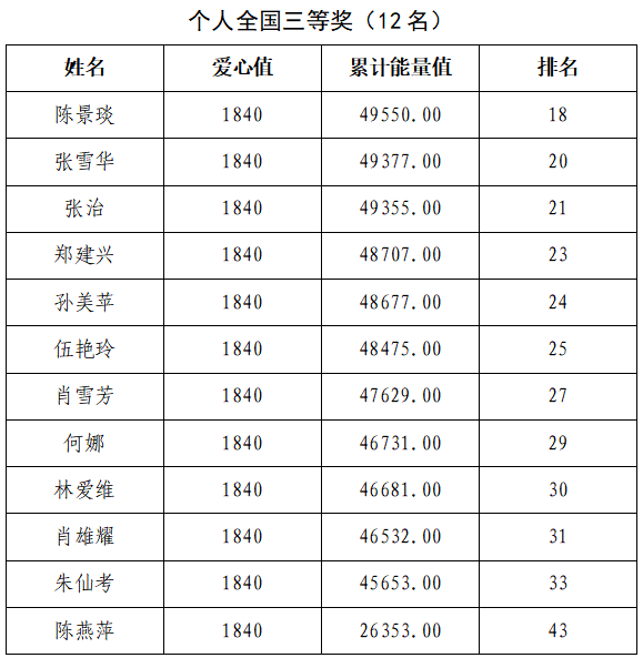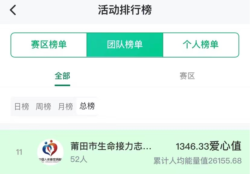 “云”动会通过线上方式举办,采用“菜单式”的运动达标+地图行走的形式开展,志愿者完成运动达标后,解锁手机地图,可观看器官捐献爱心故事,累计爱心值形成榜单成绩。大家积极参与其中,通过科学健康的运动方式享受健康生活,加强自身锻炼,助力人体器官捐献事业的发展。活动截至10月31日,生命接力运动团累计人均爱心值26155.68,取得了全国第十一名的好成绩,个人进入全国前65名的17人。