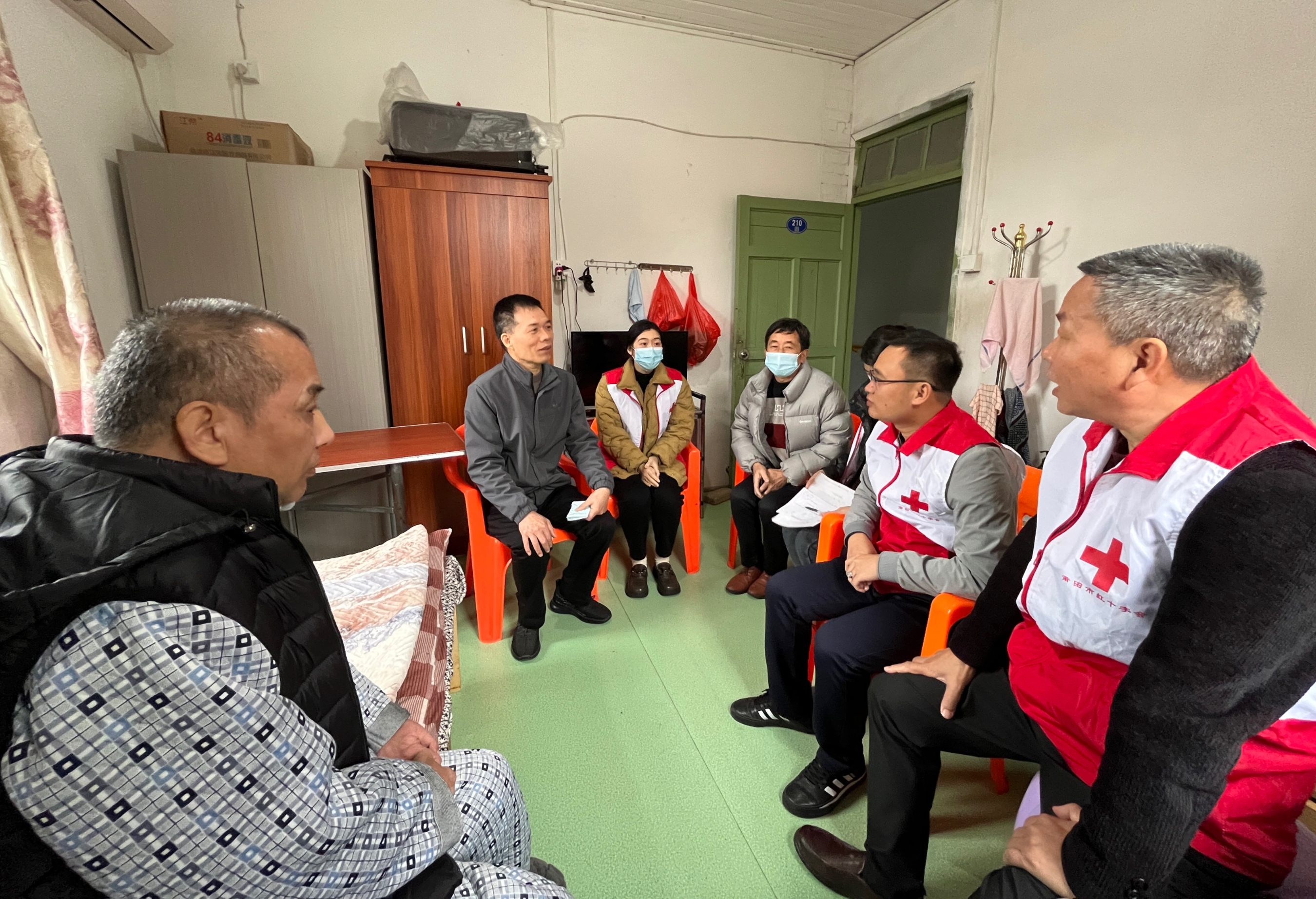 当天,来自莆田市红十字会、莆田市红十字生命接力志愿服务队、涵江区红十字会和福清市红十字会的志愿者们,走进了范开国目前所在的福清市新厝家乐养老院。范开国是涵江区新县镇张洋村人,自小患有小儿麻痹症,目前已年近六旬。由于疾病缠身,他终生未婚未育,一直在政府补助下维持生计。前不久的一次意外导致他左腿骨折,生活无法自理,于2023年8月6日入住养老院。