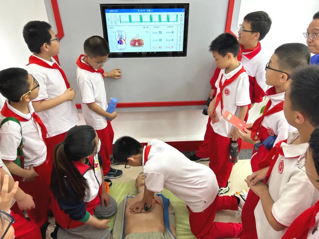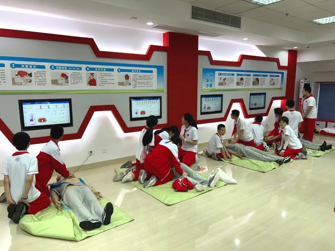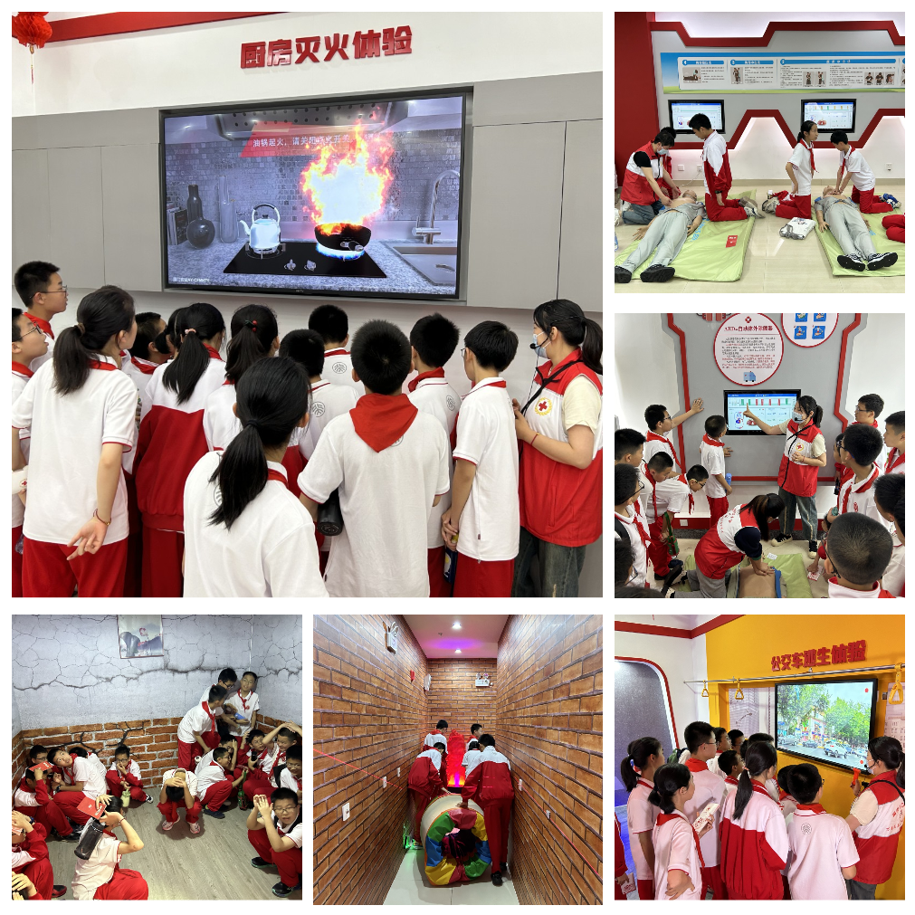 在培训中心的老师们带领下,同学们在“地震安全”板块,体验地震模拟平台,感受地震发生时各种震级带来的巨大冲击和晃动,切身了解地震知识及避震自救知识。在“交通安全”“水上救援”等板块,孩子们学习有关于交通安全的理论知识,提高对交通安全知识的认知,并通过展板、视频、救援设备展示等方式,提高防溺水知识和技能。厨房安全隐患怎么排查?灭火器怎么使用?在“消防安全”板块,同学们通过模拟灭火、仿真厨房寻找安全隐患等实践操作,学习消防知识,掌握火灾自救互救知识,提高防灾避险能力。在“应急救护”板块学习心肺复苏术、气道异物梗阻急救法等方面的知识,带领同学们系统学习判断环境安全、判断意识、启动应急反应系统、判断呼吸、给予患者心肺复苏等流程,给大家演示心肺复苏与AED使用等急救的标准步骤,气氛非常热烈,同学们真实地体验了心肺复苏的各个环节,学习并了解了非常适用的技能。