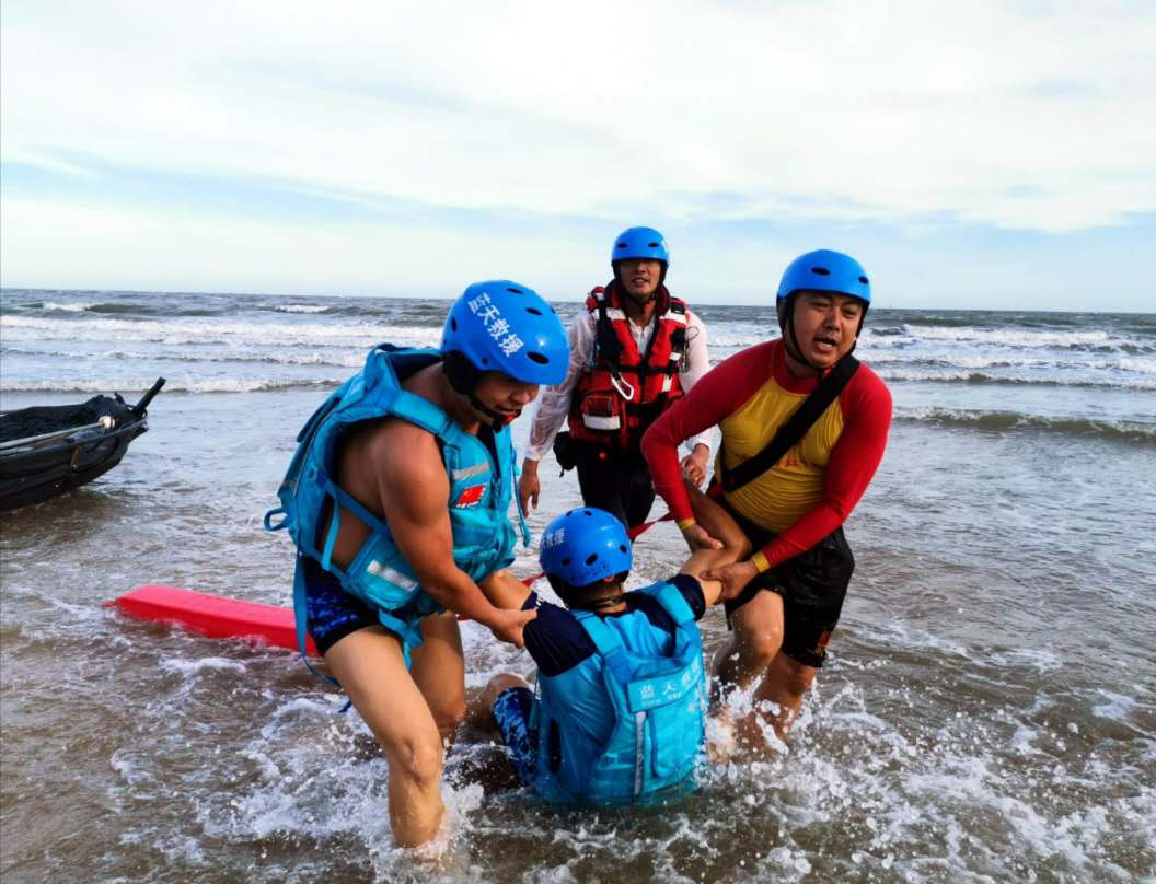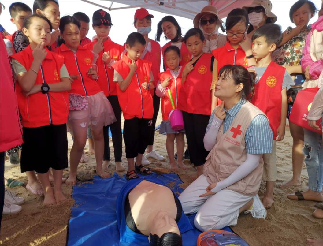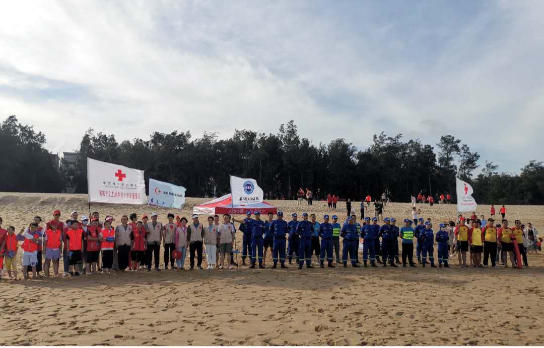 7月18日,市红十字会联合市人社局等单位在秀屿区平海镇嵌头村黄金沙滩开展“关爰生命 心系安全”为主题的防溺水演练及应急救护培训活动。主办方市红十字会和协办方莆田市红十字义工志愿服务队、莆田蓝天救援队、市红十字真心水上救援志愿服务队、市红十字赛道应急救护志愿原服务队等近200名志愿者参加。