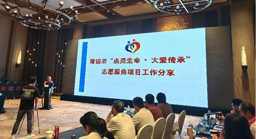 在经验交流中,市红十字生命接力志愿服务队队长张文彬分享《莆田市“点亮生命 大爱传承”志愿服务项目工作》。介绍了主要做法①部门联动聚合力,用心用情开展志愿服务活动;②多维宣传注活力,有效提升服务活动的社会引领;③人文关怀添动力,捐献故事美名扬;④队伍建设凝效力,高效推动志愿服务工作发展。