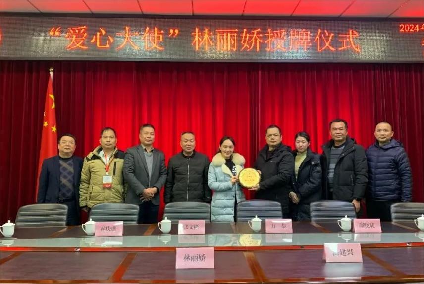 1月24日下午,莆田市生命接力志愿服务队授予音乐教师林丽娇“爱心大使”称号。莆田市红十字会事业发展科科长方恭为她授牌。仙游县教育局党委委员、办公室主任林庆廉、仙游县华文学校校长温建兴等学校中层以上干部参加了授牌仪式。