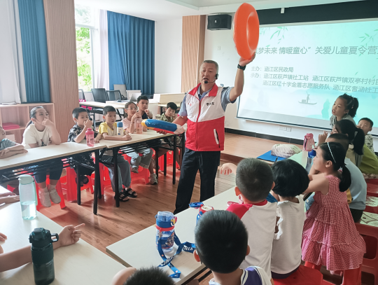 8月20日,涵江区红十字金盾志愿服务队走进华永天澜城,为参加夏令营的孩子们开展安全急救培训。志愿者们通过现场解说和互动操作,深入浅出为孩子们讲解防溺水“六个不”的注意事项、同伴溺水“叫、叫、伸、抛”的具体操作要求等急救知识,并为孩子们示范各种场合下的心肺复苏急救措施。