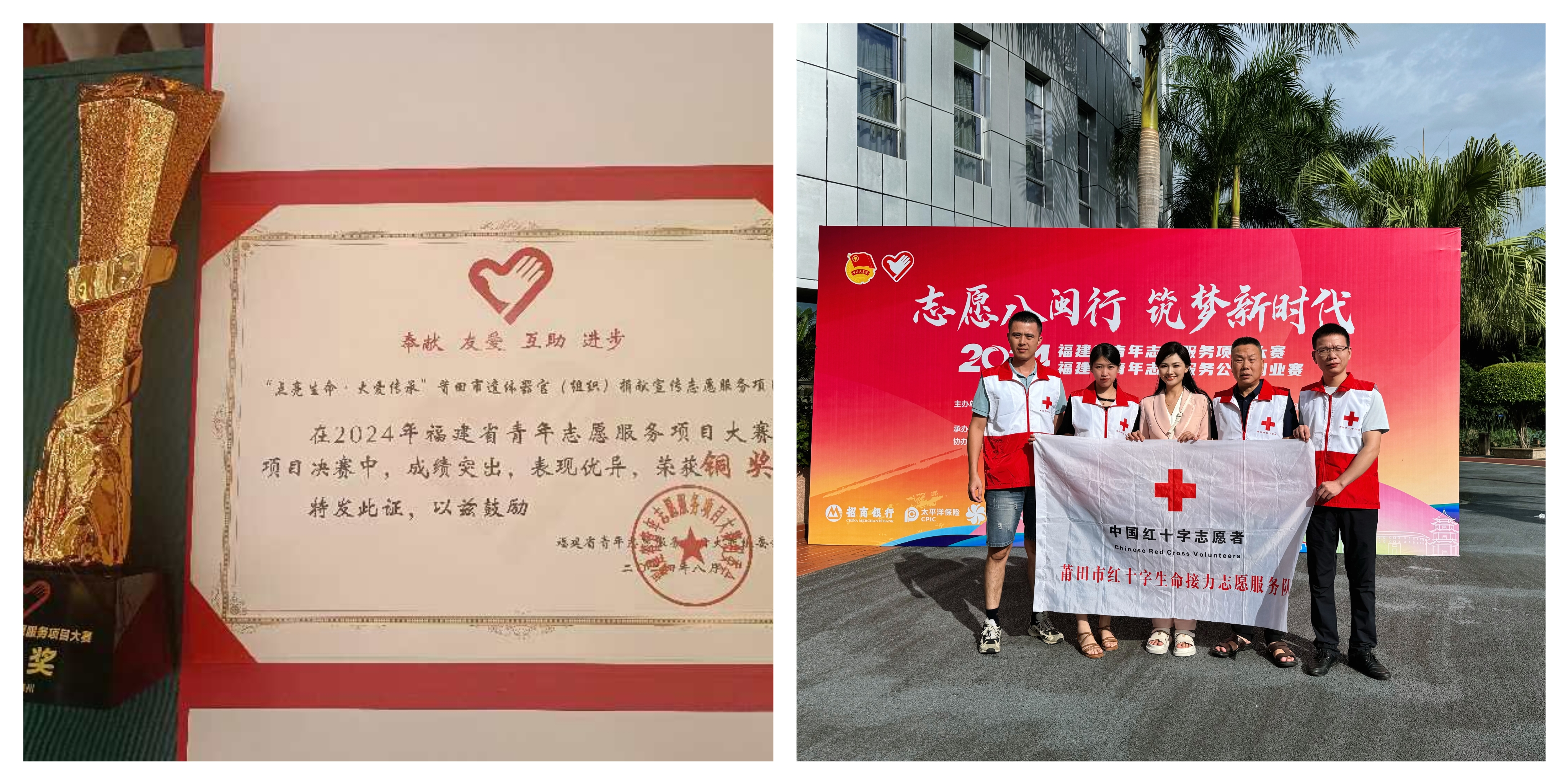 8月21日至22日,2024年福建省青年志愿服务项目大赛和福建省青年志愿服务公益创业赛在漳州市举行。经过路演和答辩两个环节的激烈角逐,我市红十字志愿服务项目——“点亮生命 大爱传承”莆田市遗体器官(组织)捐献宣传志愿项目荣获铜奖。