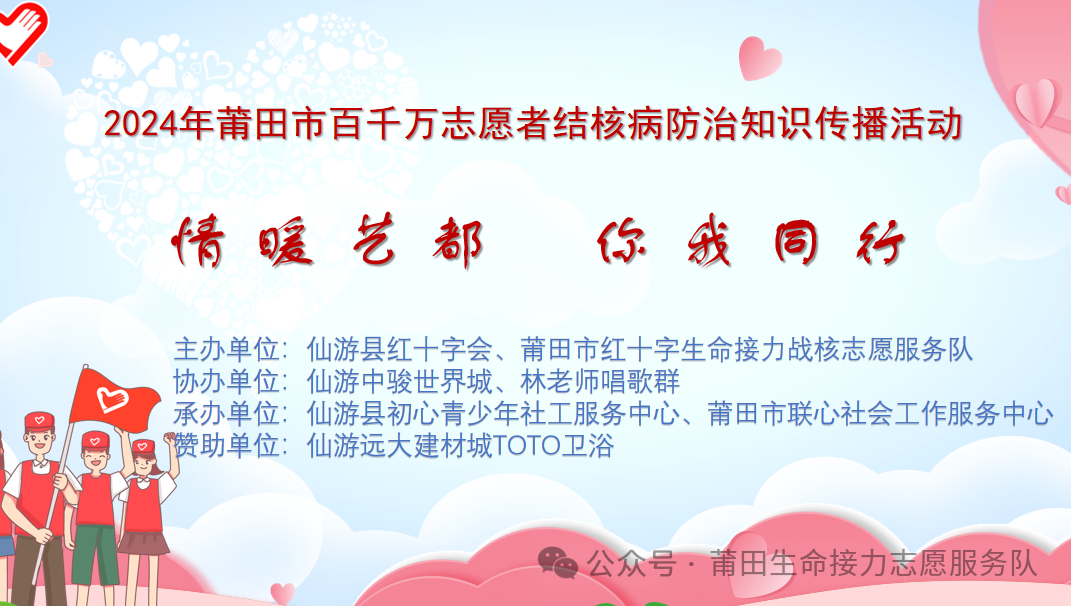 11月10日,由仙游县红十字会、莆田市红十字生命接力战核志愿服务队主办的“你我共同努力 终结结核流行”暨2024莆田市百千志愿者结防知识传播活动在仙游县中骏世界城举行。