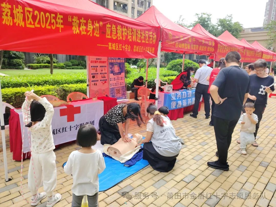 2025年5月31日端午节当天,荔城区红十字会联合荔城区红十字服务团走进拱辰街道正荣润璟小区开展“粽香传情 平安守护”之应急救护培训普及活动!