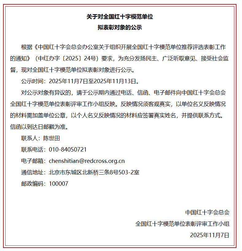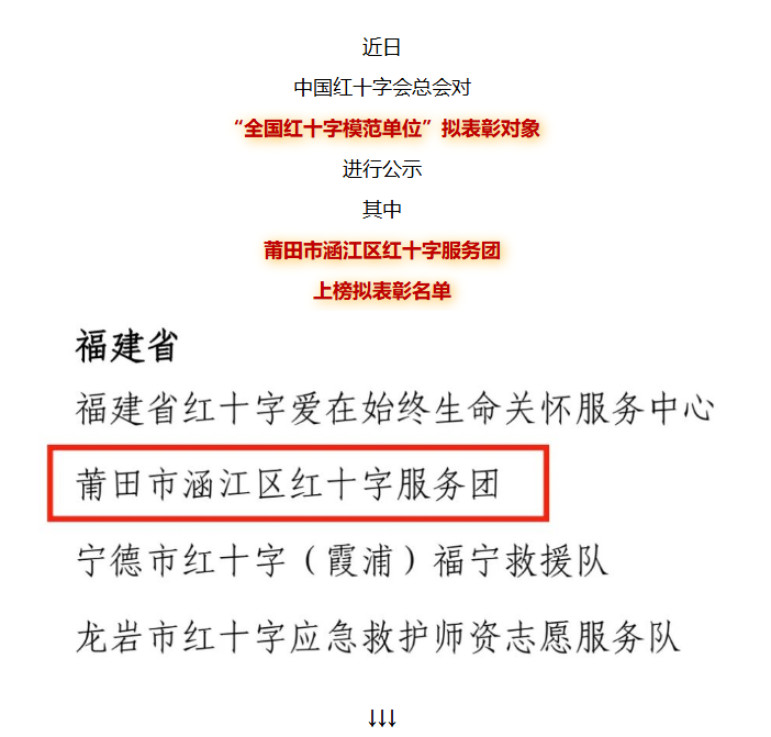 全国表彰名单公示!涵江区红十字服务团上榜!