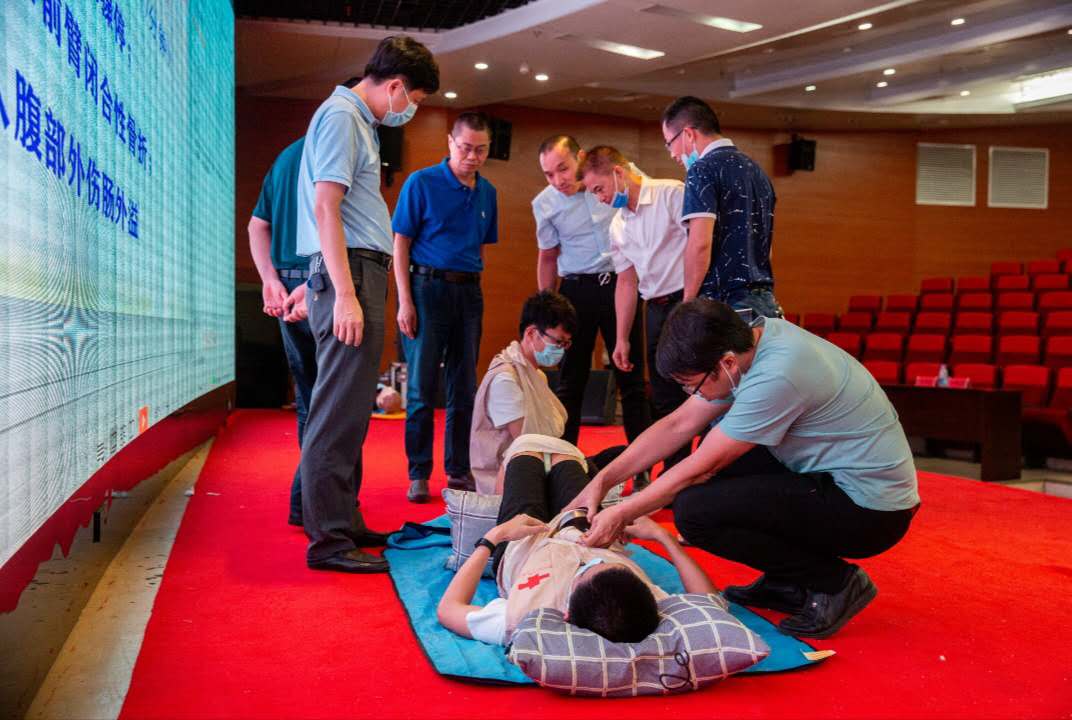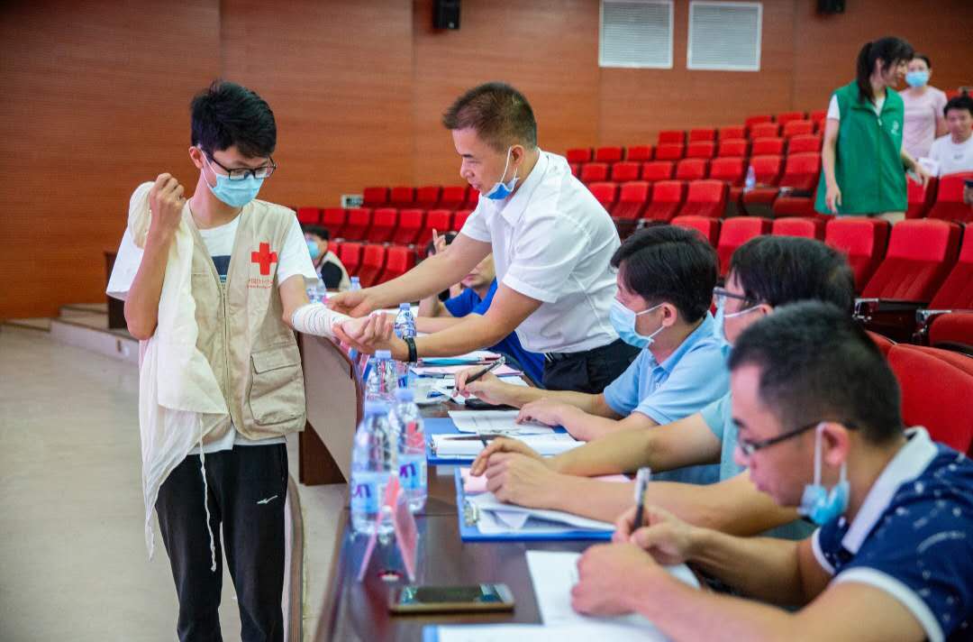本次应急救护技能竞赛分为个人赛和团体赛,个人赛包括理论考试、成人心肺复苏操作、创伤救护实操;团队赛包括救护演讲及根据事故模拟场景开展急救。