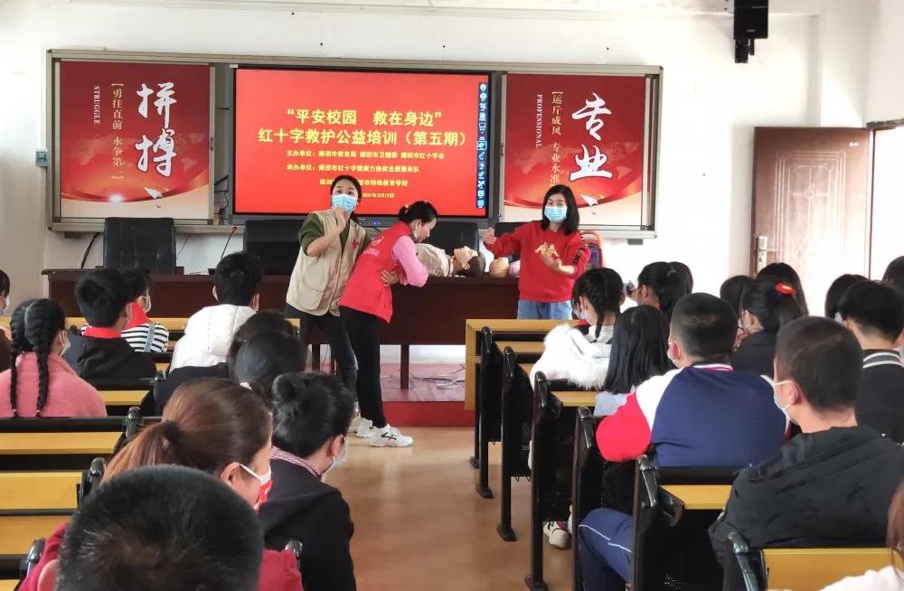 3月12日,为深入推进平安校园建设,普及和提高教师的应急救援知识和自救互救能力,莆田市红十字应急救护老师及健康力应急救护志愿队一行来到莆田市特殊教育学校,开展“平安校园·‘救’在身边”应急救护公益培训活动。学校教职工和听障学生共70多人参加了培训。