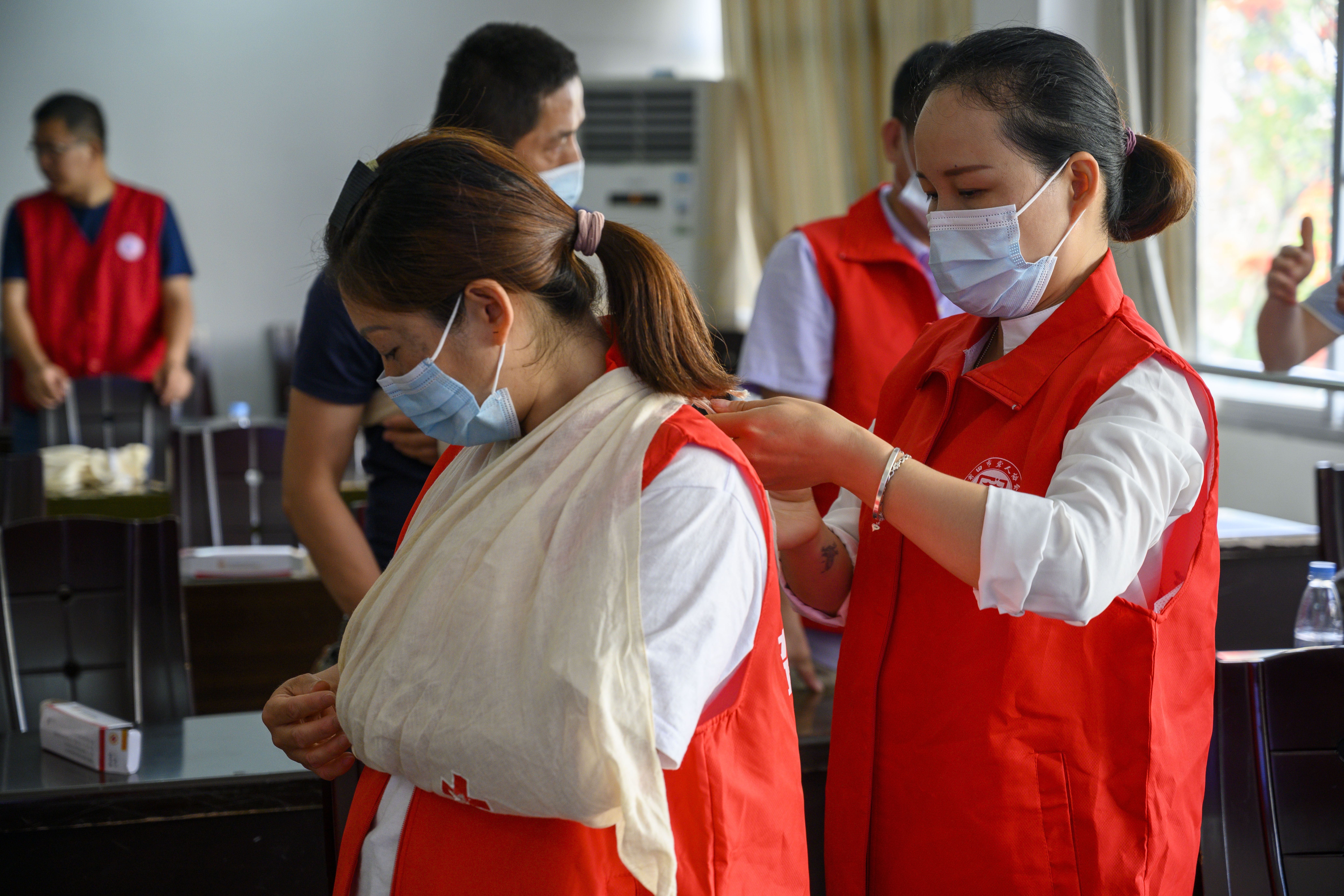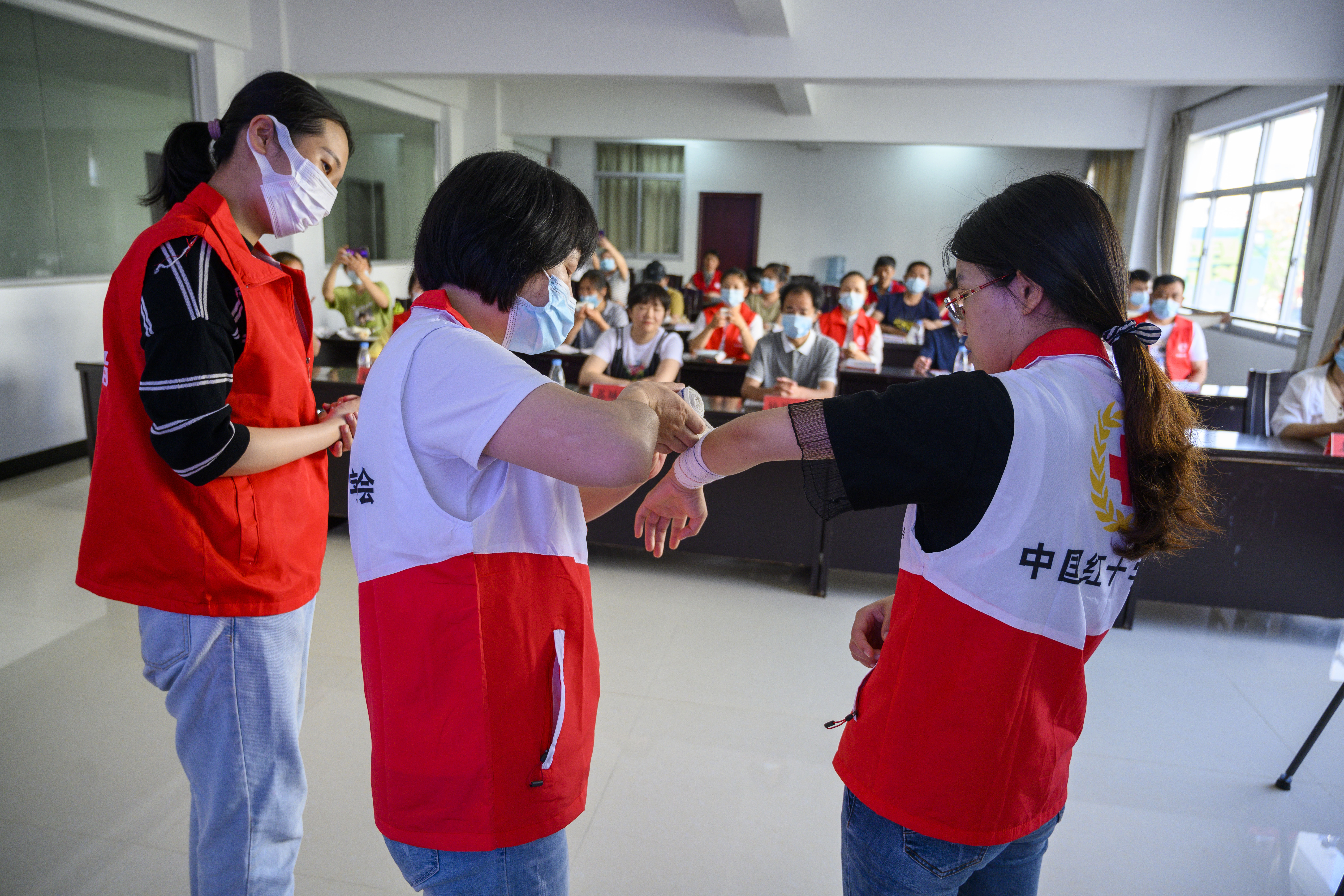 在讲座过程中,红十字会的老师郑雪群和俞书琴以心肺复苏、伤口包扎等应急救护为主要内容,理论讲解和实际操作相结合,讲解了应急救护的要领、步骤和注意事项。市特殊教育学校陈薇担当了手语翻译,协助讲解了现场紧急救护知识。培训现场分批次让聋人实操练习了胸外按压及人工呼吸的操作,老师们进行实时指导、点评并纠正错误。