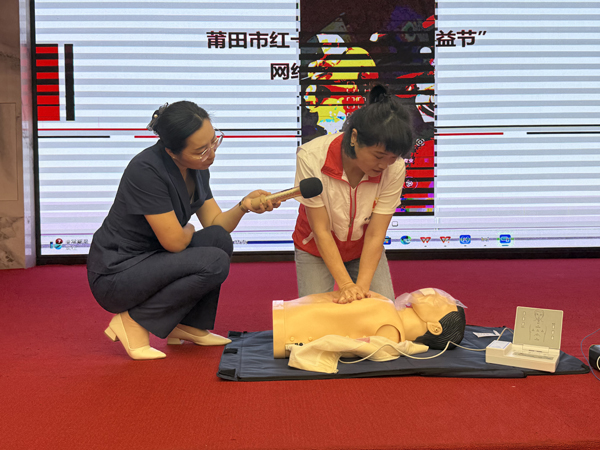 活动现场,莆田九十五医院副主任护师罗阳重点围绕心肺复苏术,为大家带来系统性应急救护培训。莆田市中心血站宣讲员官颖颖为大家普及了“什么是无偿献血”“无偿献血注意事项”等相关知识,让大家对无偿献血有了更加全面、正确的认识。