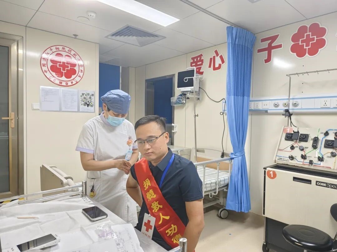 2025年9月20日是第十一个“世界骨髓捐献者日”。9月19日,在“世界骨髓捐献者日”到来之际,“85后”红十字工作者陈军赴榕签署捐献造血干细胞同意书,为兑现4年前“捐髓救人”的生命之约庄重承诺。在连续6天的造血干细胞“动员剂”注射之后,23、24日,经过两次外周血循环采集,陈军成功捐献造血干细胞,为挽救那名“有缘”的血液病人的生命送去希望。